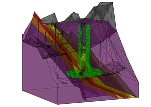 ⦁ 3D geological modelling resulting in georeferenced 1:1 geological model showing different bands of structural deformation and rock quality in rock mass